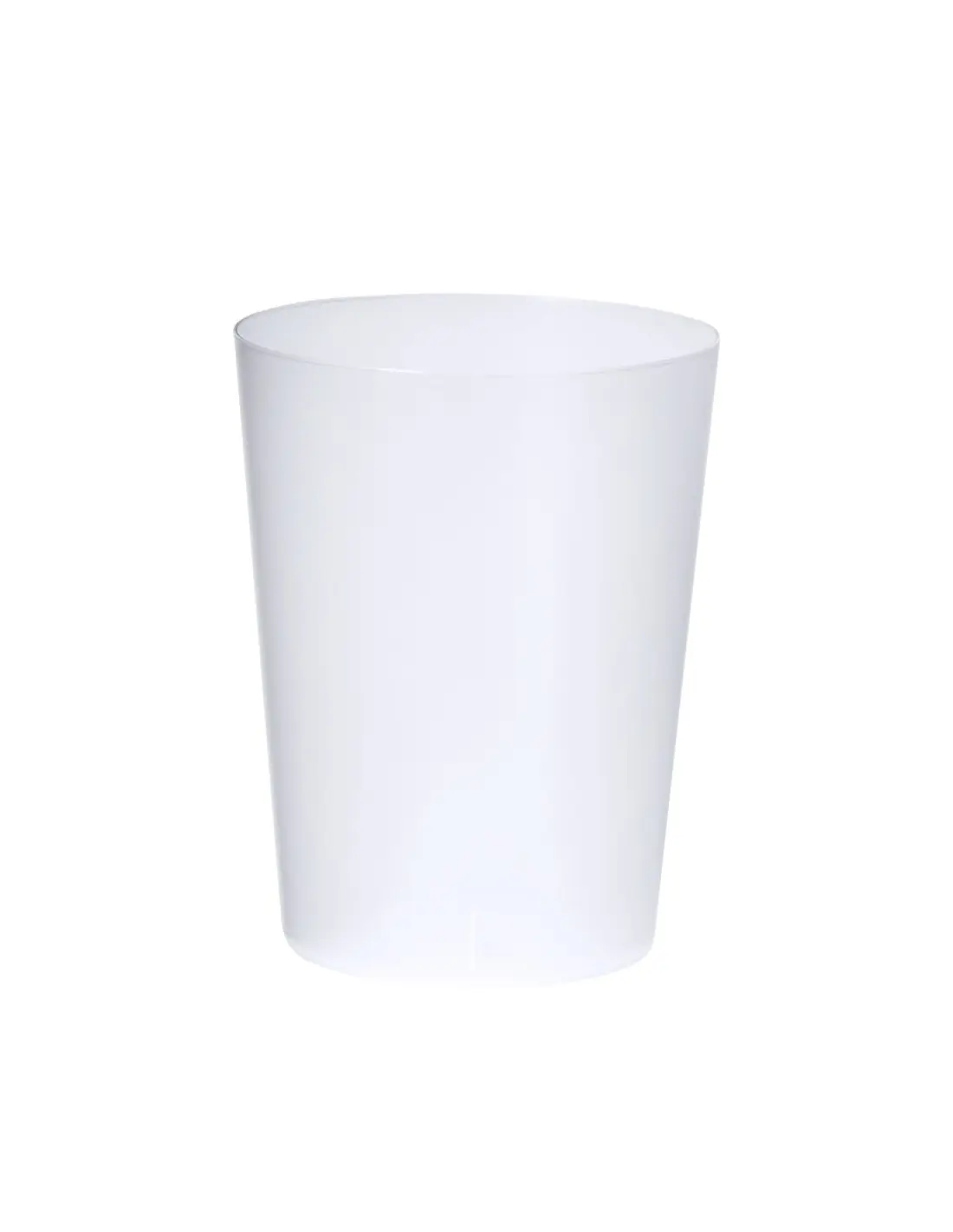 Vaso de 900 ml de capacidad en resistente y flexible material PP. Reutilizable y en acabado translúcido.