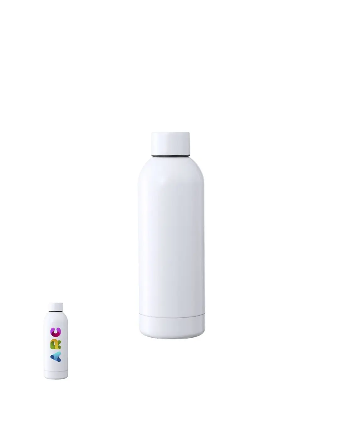 Bidón térmico de 500 ml de capacidad, fabricado en acero inox de doble pared y especialmente diseñado para marcaje en sublimación. De acabado blanco brillo y con tapón a rosca a juego, libre de BPA. Presentado en caja individual de diseño kraft. Disponible manual de instrucciones en español e inglés.