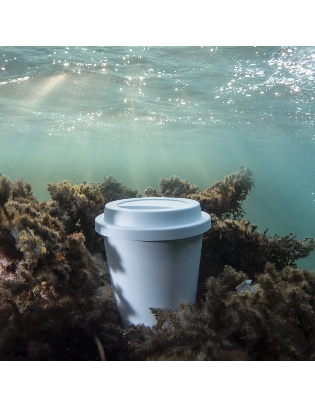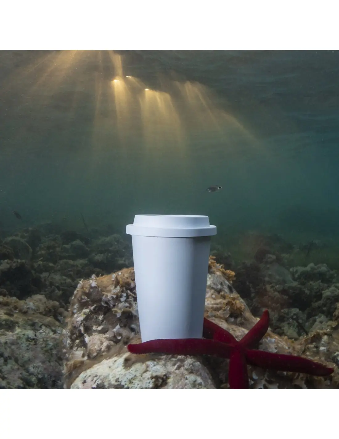 Vaso de linea nature, fabricado en PLA 100% compostable. 450ml de capacidad, de acabado sólido y con tapa dosificador de seguridad en mismo material,...