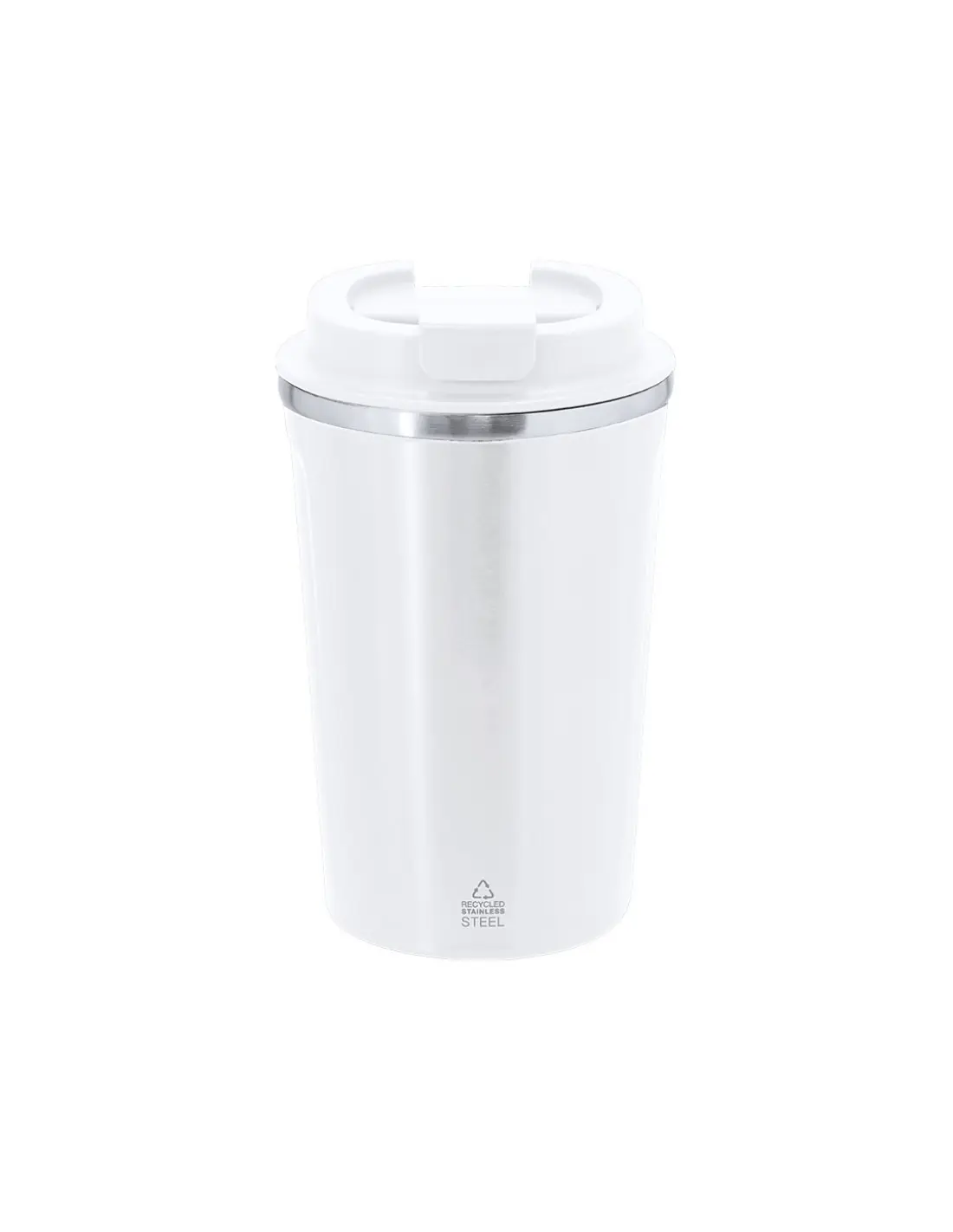 Vaso térmico de doble pared fabricadao en Acero Inox Recliclado y 400 ml de capacidad. Tapadera con dosificador de fácil apertura de PP y libre de BPA. Incluye distintivo de Acero Inox Reciclado.El acero es uno de los materiales más demandados y que puede encontrarse casi en todas partes, desde productos de uso diario a grandes construcciones. Con innumerables propiedades, entre las que cabe destacar la durabilidad y su alto grado de reutilización, convirtiéndolo en una alternativa muy valorada en soluciones de sostenibilidad. Debidamente tratado, permite obtener nuevos recursos de infinita utilización.