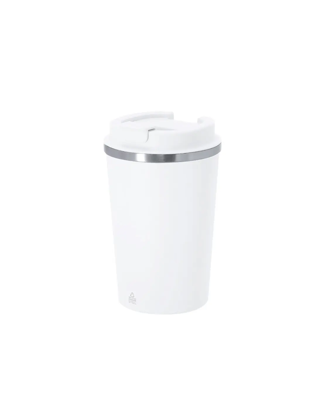 Vaso térmico fabricado en Acero Inox Reciclado de doble pared y 350ml de capacidad. Con doble pared para mejor y más duradera conservación de la temperatura e interior con recubrimiento de cerámica, apto para bebidas carbonatadas. Equipado con un dosificador en la tapa de color negro, diseñado para evitar fugas y libre de BPA. Con distintivo de Acero Inox Reciclado.El acero es uno de los materiales más demandados y que puede encontrarse casi en todas partes, desde productos de uso diario a grandes construcciones. Con innumerables propiedades, entre las que cabe destacar la durabilidad y su alto grado de reutilización, convirtiéndolo en una alternativa muy valorada en soluciones de sostenibilidad. Debidamente tratado, permite obtener nuevos recursos de infinita utilización.