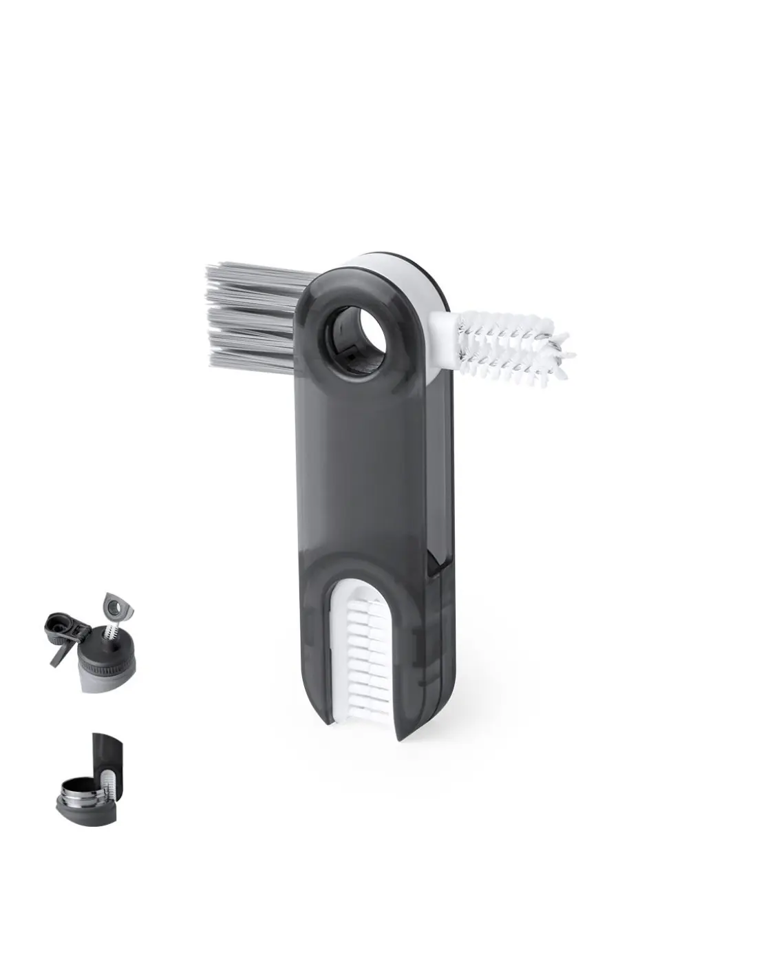 Práctico cepillo limpiador todo en uno, especialmente diseñado para bidones, termos, tazas, vasos y artículos similares. Incluye 3 cepillos con diferentes tipos de cerdas, ideales para la correcta limpieza de las partes de difícil acceso de los recipientes. Fabricado en resistente material ABS, con zona lisa para marcaje y presentado en caja individual de diseño kraft.