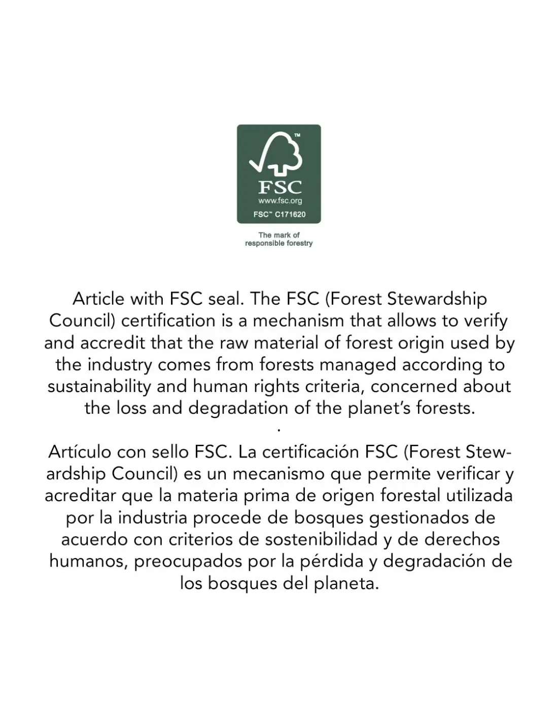 Batería auxiliar externa de línea nature con capacidad de 10.000 mAh. Incluye cargador inalámbrico de 5W, apto para todos los dispositivos compatibles con carga inalámbrica, y un panel de carga solar. Fabricada en bambú procedente de bosques sostenibles con certificación FSC. Cuenta con 2 salidas USB, 1 entrada Micro USB, y una entrada tipo C. Cable de carga micro USB incluido. Con indicador de estado de carga y presentada en atractiva caja de diseño eco. Distinción FSC sobre el producto. Las capacidades mostradas en todas nuestras baterías auxiliares externas son reales, incorporando todas ellas baterías de grado A y no recicladas, con una vida útil de al menos 500 ciclos de carga y según normativa CE. Además, están fabricadas conforme a los estándares RoHS y en cumplimiento con los siguientes requisitos de seguridad: Sistema de protección contra sobrecarga del power bank. Sistema de protección contra descarga completa que proporciona una mayor durabilidad del power bank. Sistema de bloqueo para evitar cortocircuitos. Sistema de transferencia de carga constante, acorde con la capacidad del dispositivo de destino.