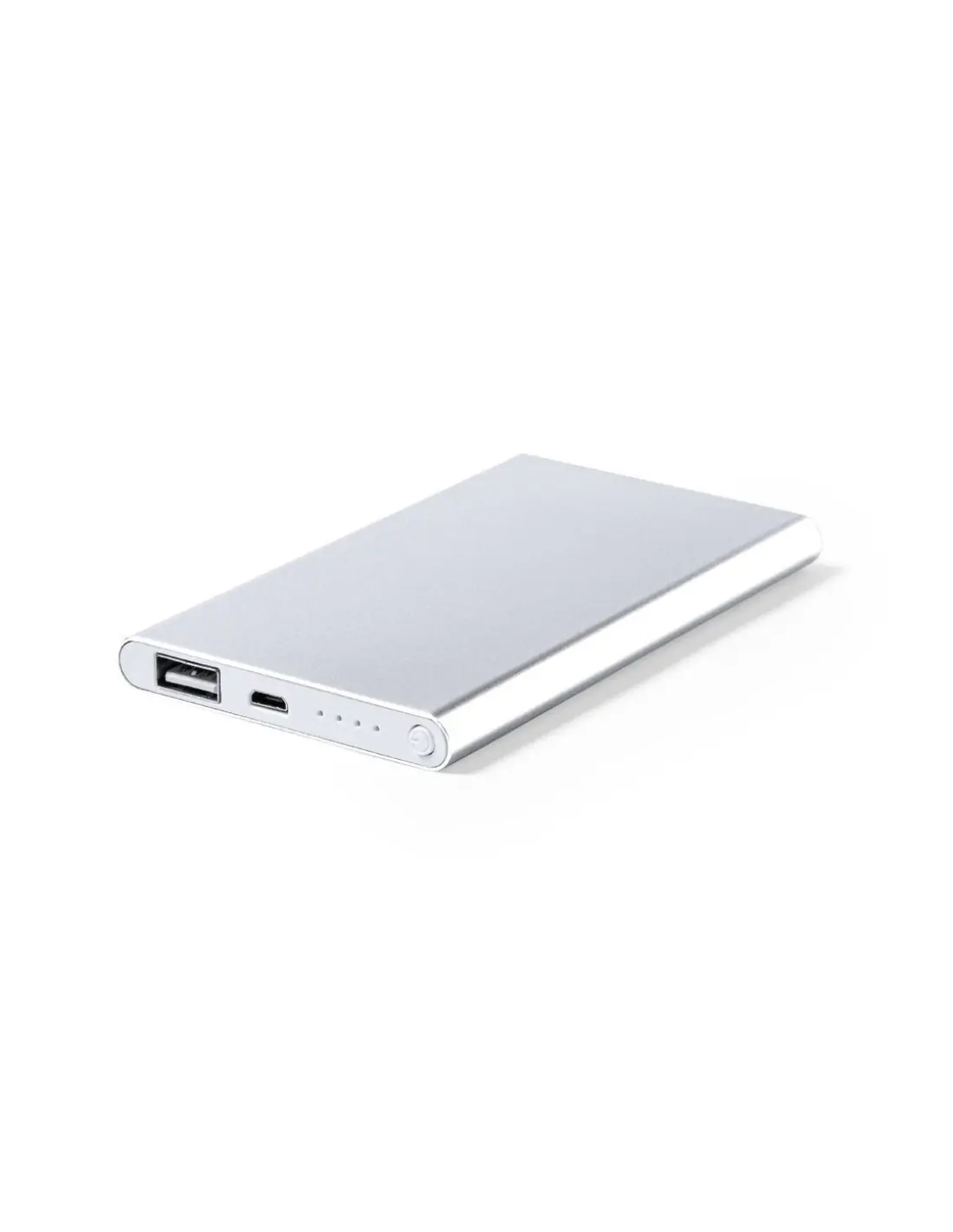 Batería auxiliar externa de 2.200 mAh, de diseño plano y fabricada en aluminio. Con salida USB y entrada Micro USB. Indicadores LED de estado de carga y cable de carga Micro USB incluido. Presentada en caja individual de diseño kraft, con manual de instrucciones en español e inglés. Entrada micro USB: 5V DC 1A Salida USB: 5V DC 1A Las capacidades mostradas en todas nuestras baterías auxiliares externas son reales, incorporando todas ellas baterías de grado A y no recicladas, con una vida útil de al menos 500 ciclos de carga y según normativa CE. Además, están fabricadas conforme a los estándares RoHS y en cumplimiento con los siguientes requisitos de seguridad: Sistema de protección contra sobrecarga del power bank. Sistema de protección contra descarga completa que proporciona una mayor durabilidad del power bank. Sistema de bloqueo para evitar cortocircuitos. Sistema de transferencia de carga constante, acorde con la capacidad del dispositivo de destino.