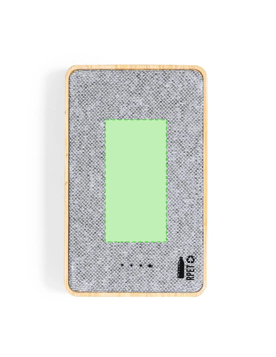Batería auxiliar externa de 5.000 mAh, fabricada en bambú y poliéster RPET, elaborado a partir de plástico reciclado, para así fomentar la...