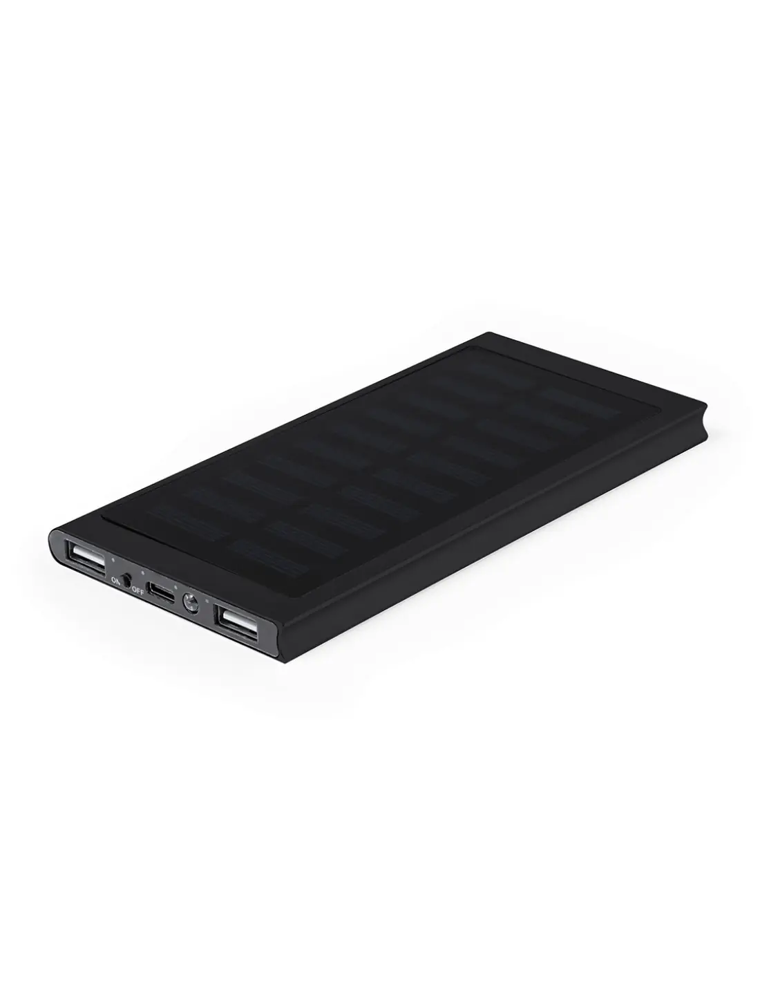 Batería auxiliar externa de recarga solar y de gran capacidad de carga -8.000 mAh-. Fabricada en aluminio, con conector de entrada/salida Tipo C y 2 salidas USB. Presentada en caja individual de diseño kraft. Disponible manual de instrucciones en español e inglés.Las capacidades mostradas en todas nuestras baterías auxiliares externas son reales, incorporando todas ellas baterías de grado A y no recicladas, con una vida útil de al menos 500 ciclos de carga y según normativa CE. Además, están fabricadas conforme a los estándares RoHS y en cumplimiento con los siguientes requisitos de seguridad:Sistema de protección contra sobrecarga del power bank.Sistema de protección contra descarga completa que proporciona una mayor durabilidad del power bank.Sistema de bloqueo para evitar cortocircuitos.Sistema de transferencia de carga constante, acorde con la capacidad del dispositivo de destino.