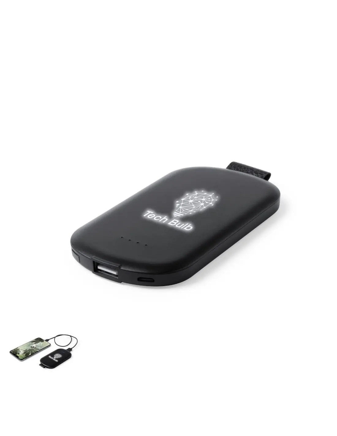 Batería auxiliar externa de 2.500 mAh de capacidad de carga. Con luz led interior y un recubrimiento exterior especialmente diseñado para marcaje en láser, con el que conseguirá que su publicidad o marca quede iluminada con luz blanca. Indicador de estado de carga, con salida USB y entrada micro USB -cable incluido-. Con amplia superficie de marcaje y presentada en atractiva caja de diseño. Las capacidades mostradas en todas nuestras baterías auxiliares externas son reales, incorporando todas ellas baterías de grado A y no recicladas, con una vida útil de al menos 500 ciclos de carga y según normativa CE. Además, están fabricadas conforme a los estándares RoHS y en cumplimiento con los siguientes requisitos de seguridad: Sistema de protección contra sobrecarga del power bank. Sistema de protección contra descarga completa que proporciona una mayor durabilidad del power bank. Sistema de bloqueo para evitar cortocircuitos. Sistema de transferencia de carga constante, acorde con la capacidad del dispositivo de destino.