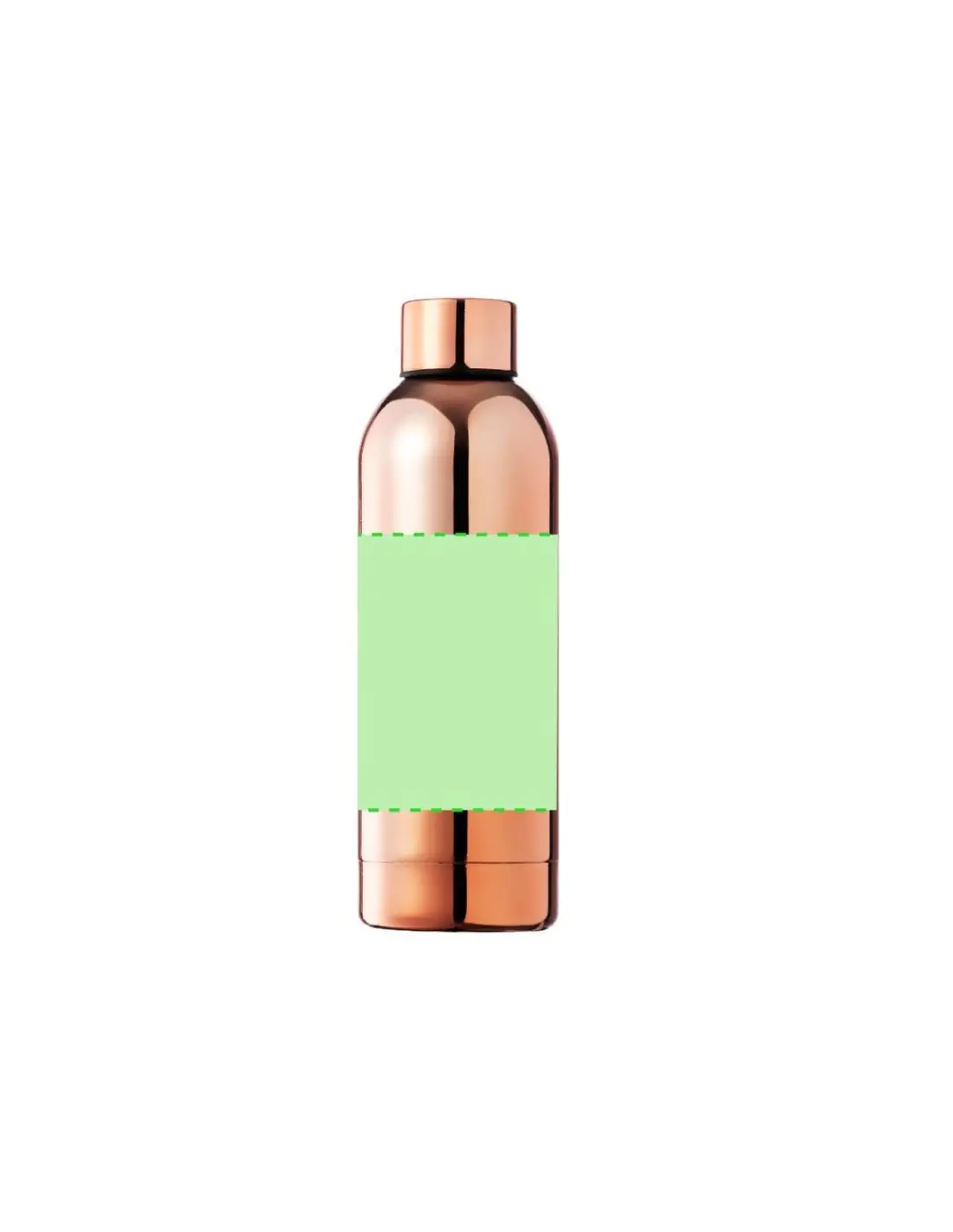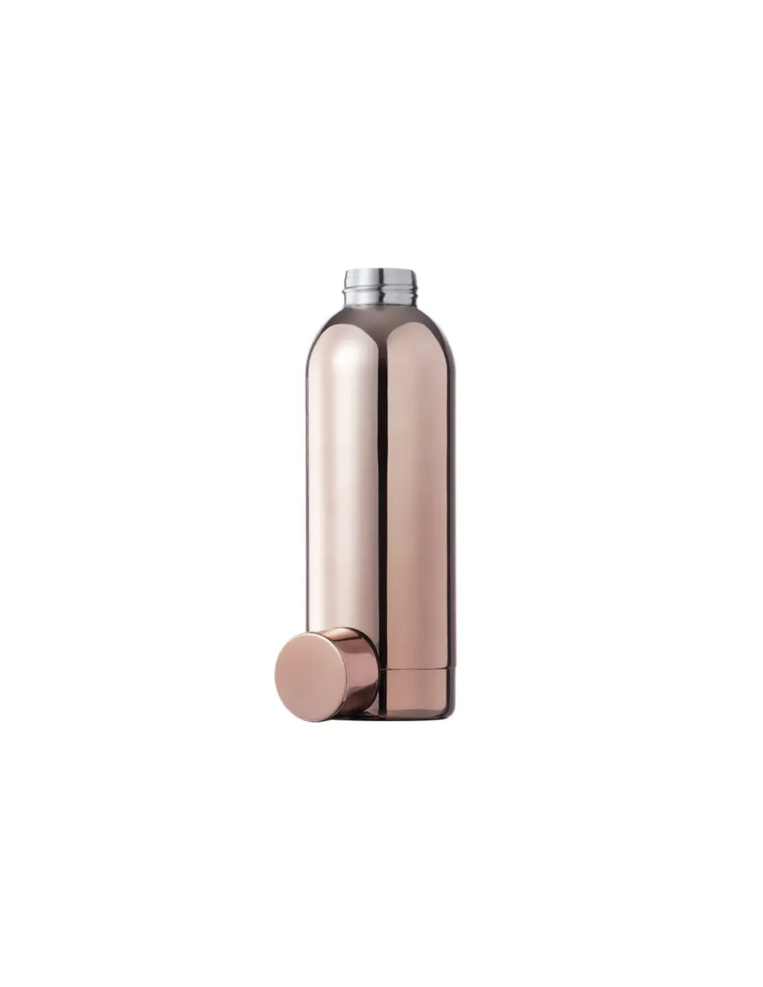 Bidón de 750 ml de capacidad, fabricado en acero inox y con recubrimiento exterior de cobre galvanizado. Tapón a rosca, libre de BPA. Presentado en caja individual negra de elegante diseño.