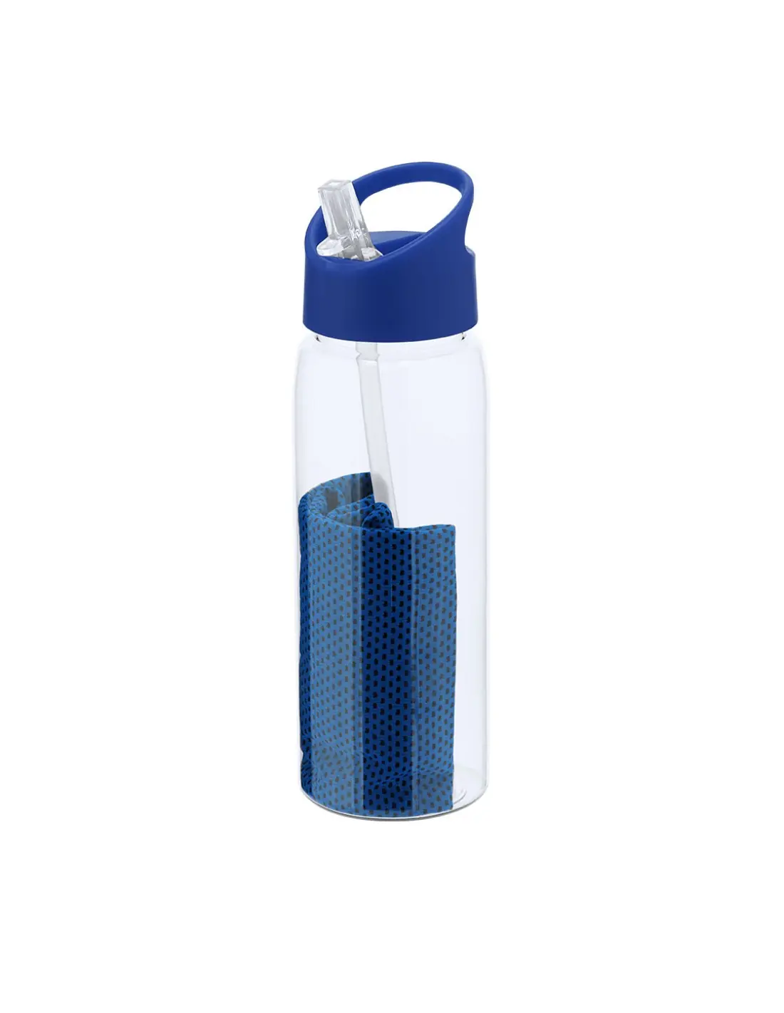 Set de bidón y toalla fabricados en RPET. Bidón de 800 ml de capacidad con sistema de fácil apertura libre de BPA con dosificador de pajita y asa de...