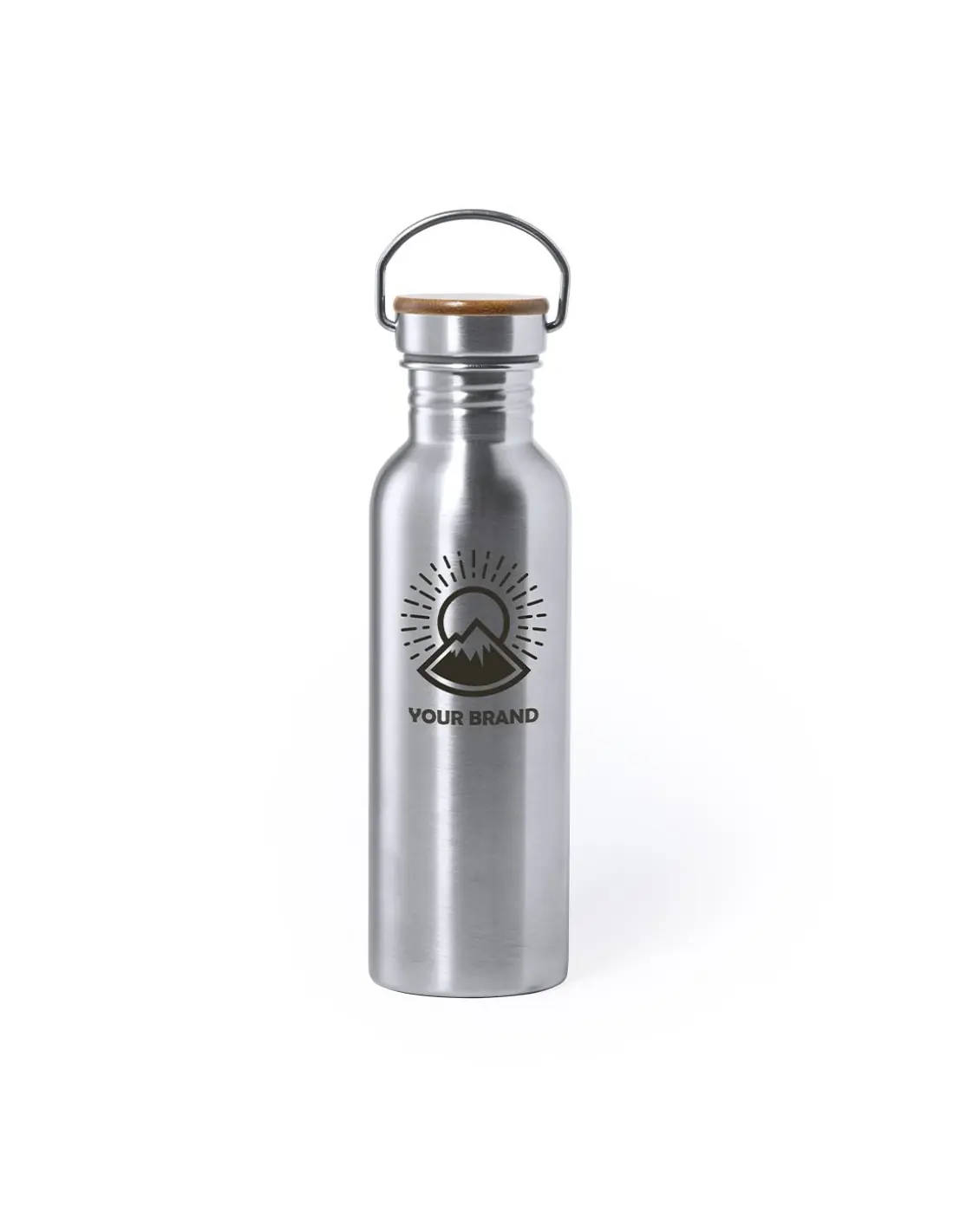 Bidón de línea nature y 800ml de capacidad. Cuerpo fabricado en acero inox y tapón en bambú con original asa metálica de transporte. Presentado en atractiva caja de diseño eco.