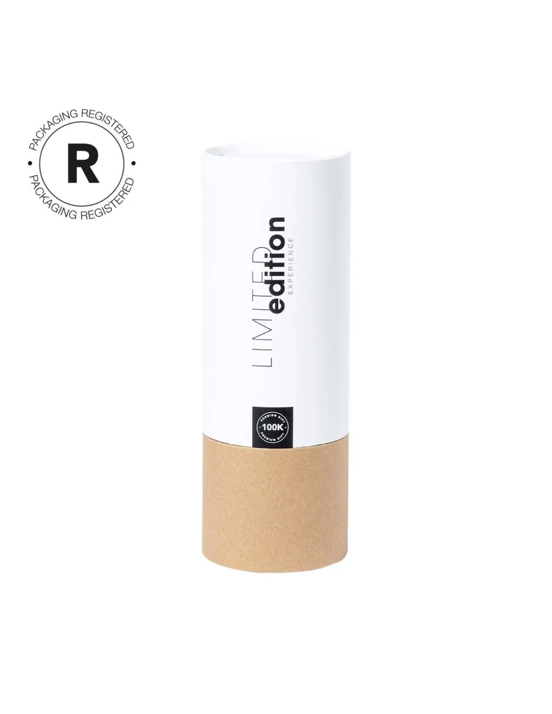 Bidón Limited Edition. Envuelto en un ecodiseño de líneas suaves, este bidón combina cuerpo en acero inoxidable, funda de paja y tapón de seguridad a rosca con base de bambú. Incluye asa de transporte. De 600ml de capacidad. De la perfecta combinación entre exclusividad y diseño, nace Limited Edition, una colección especial de ideas promocionales de edidición limitada. Un nuevo concepto, inspirado en la fusión de artículos premium con las últimas y más novedosas tendencias y que cuenta con una seleción limitada de unidades, convirtiendo así un regalo en una experiencia única e inolvidable. Exclusivo estuche de presentación Limited Edition, con diseño protegido por derechos de propiedad industrial. Incluida tarjeta con descripción de Limited Edition en cartón reciclado.