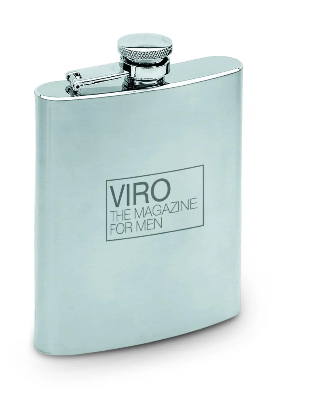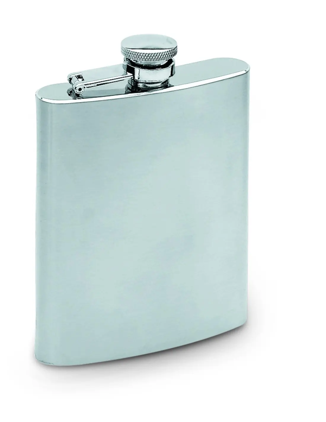 Licorera de metal con acabado satinado y capacidad para 200 ml.